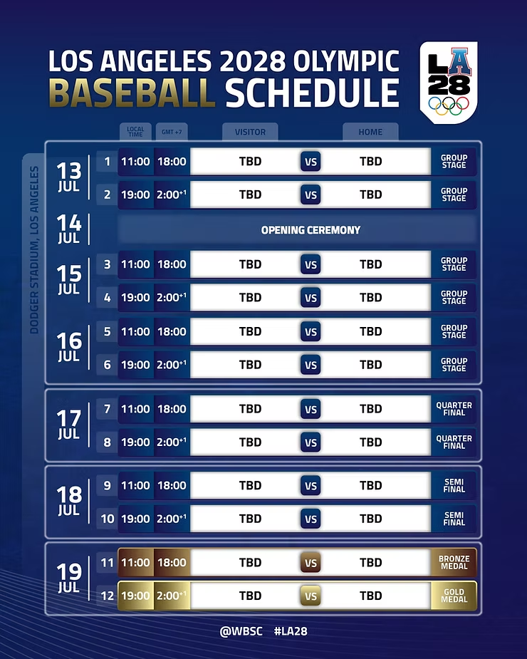 El Comité Organizador de los Juegos Olímpicos de LA28, anunció hoy el calendario del torneo de béisbol.