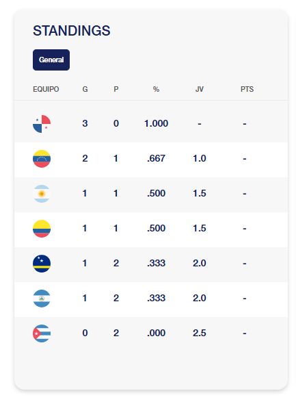 Con la derrota, Cuba se hunde en el fondo de la tabla de posiciones del torneo con marca de 0-2, y este domingo desde las 7:00 PM (ET) - Hora de Cuba y el Este de EEUU - deberá enfrentar al seleccionado de Argentina, que tiene marca de 1-2 tras una sorprendente victoria de 8-7 ante Curazao en la primera fecha del torneo.